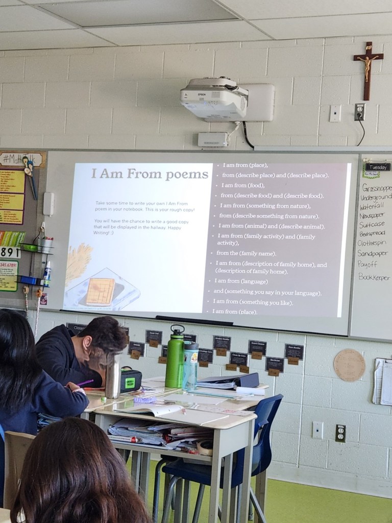 Activity & Lesson Plan: Today’s lesson is a new unit – Poetry! Students were given the opportunity to explore their identity through an ‘I Am From’ poem.