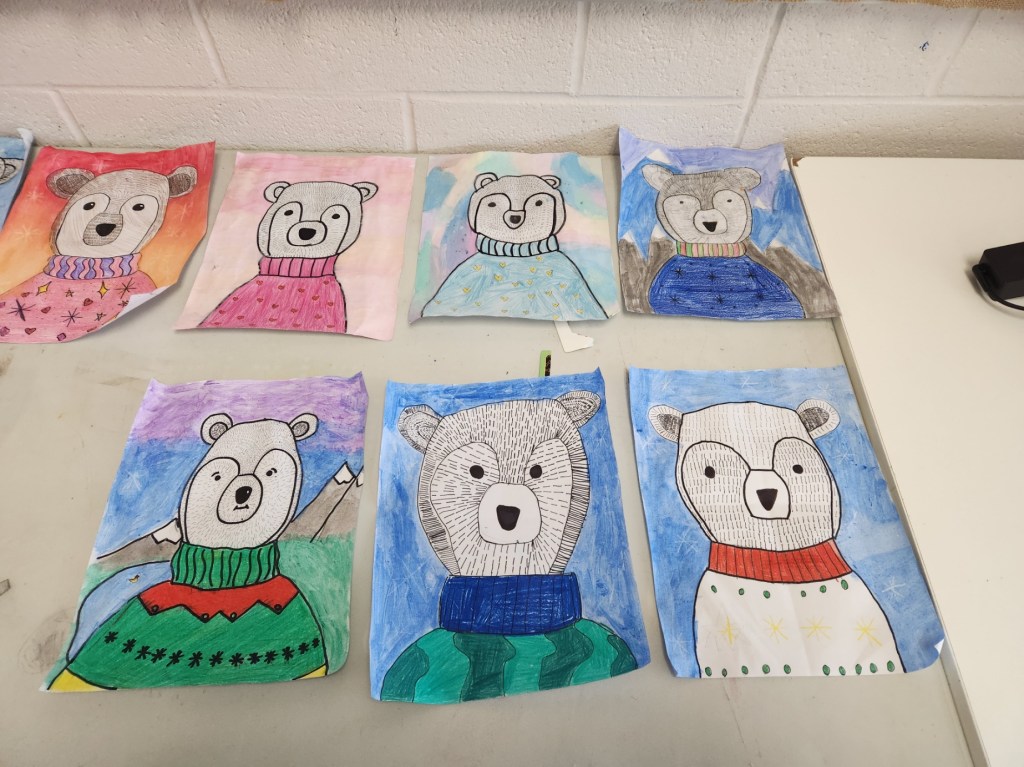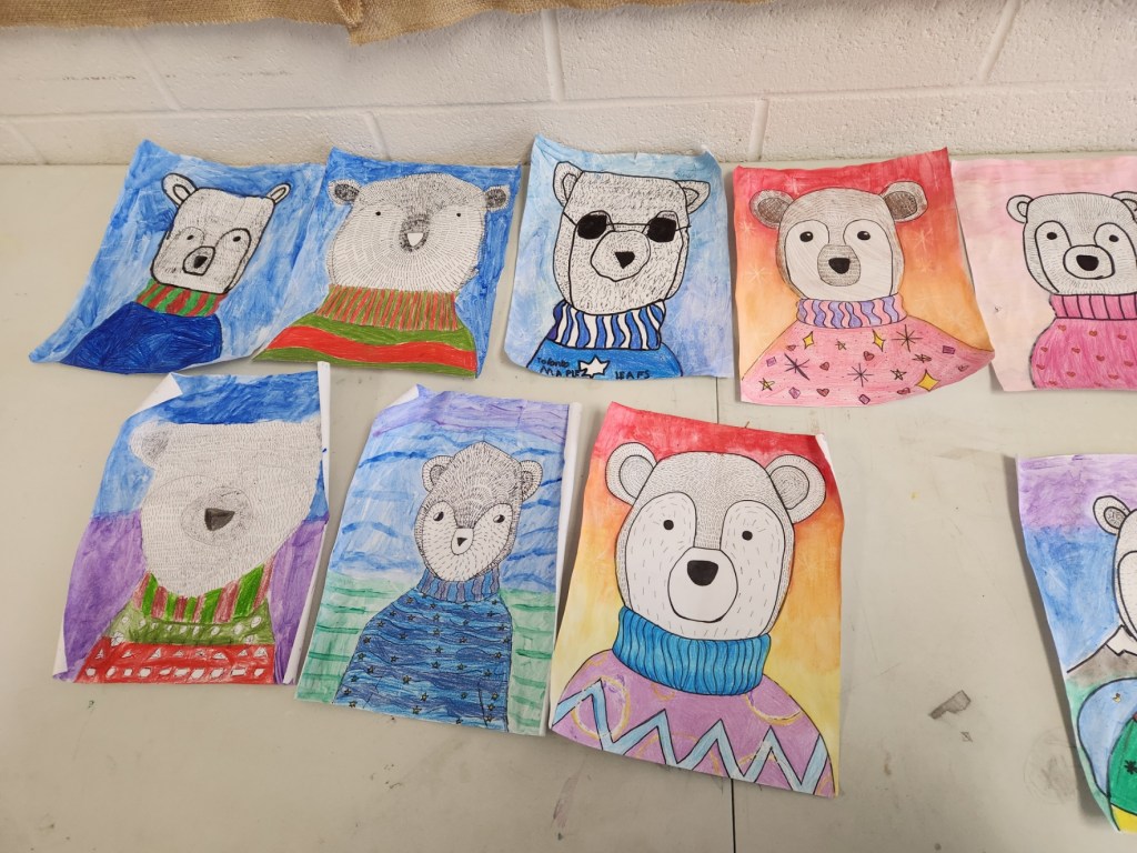 Bringing warmth to a chilly month—our polar bear artwork added creativity, calm, and colour to the winter days.