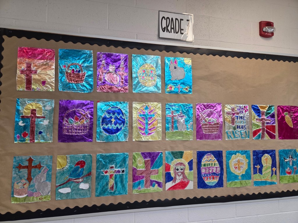 Students expressed the spirit of Easter through creativity, blending symbols of faith and spring in their artwork.