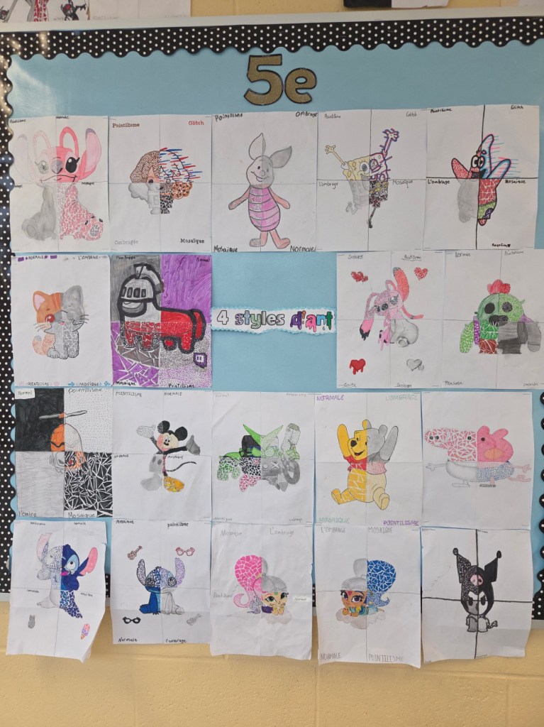 Les élèves ont exploré quatre styles d’art en immersion française—chaque œuvre nous a fascinés par sa couleur, sa créativité et sa diversité culturelle!