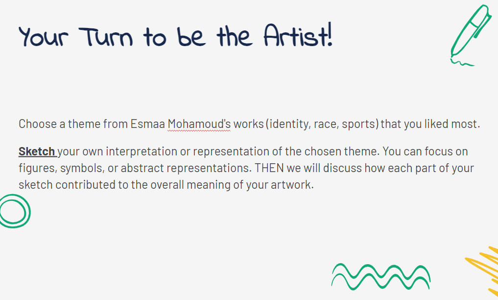 Journey through our art gallery as we highlight Esmaa ‘E’ Mohamoud’s artwork and themes where each piece of student art tells a story, celebrates culture, and reflects life from a new perspective.